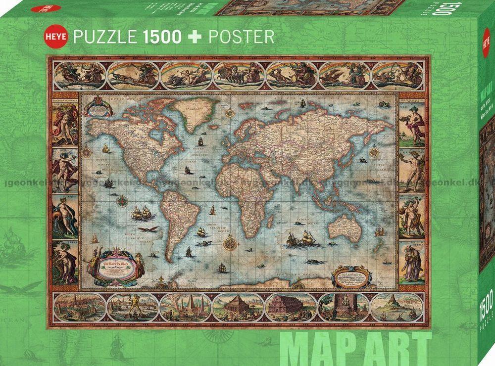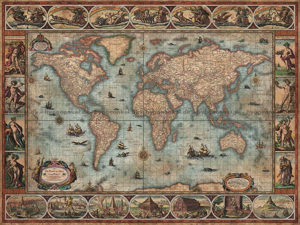 - Detaljeret antikt verdenskort med alle verdens kontinenter