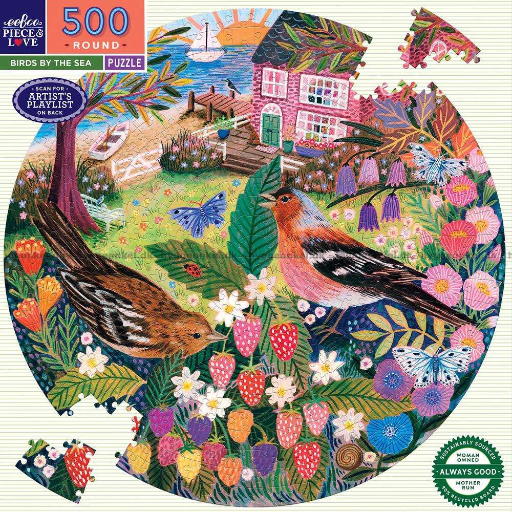 Fuglene ved havet - Rundt puslespil, 500 brikker