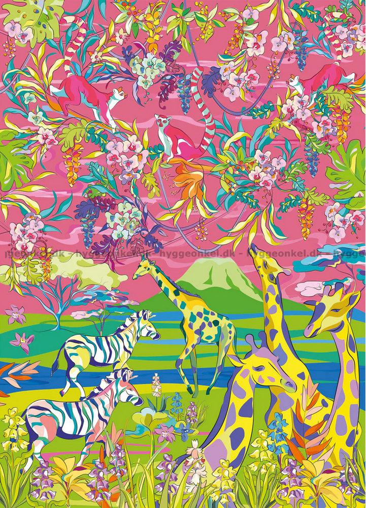 - Der er en fest af farver på savannen fyldt med eksotiske dyr og frodig vegetation