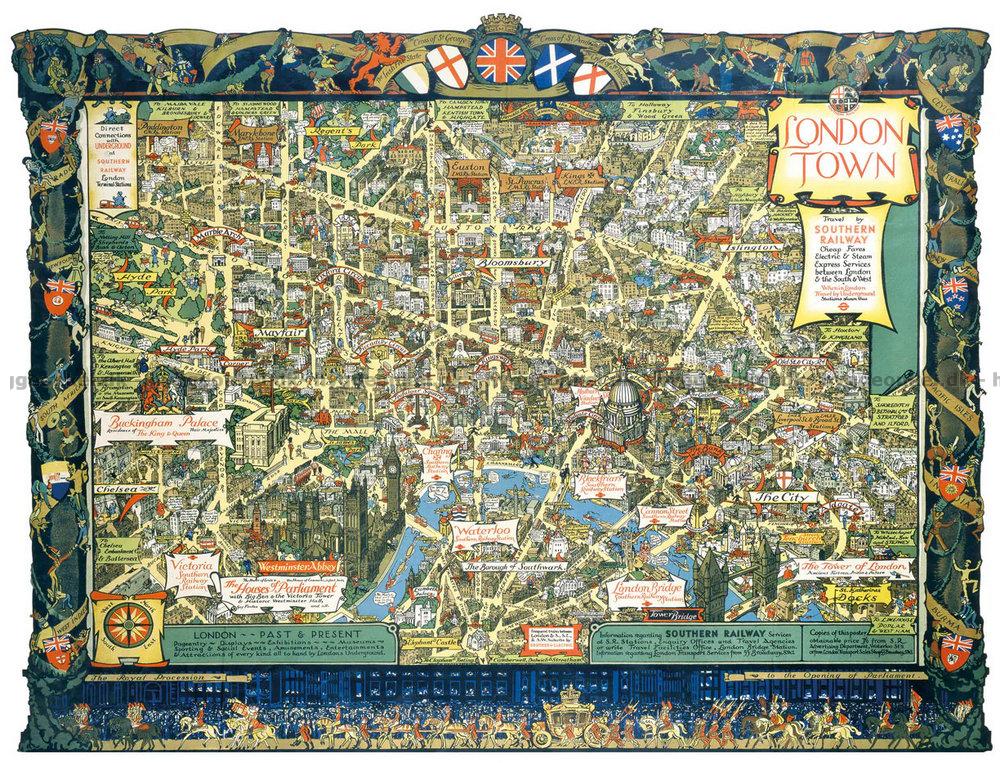 - Et spændende kort over den engelske hovedstad fra 1938 - drag med igennem de mange gader og oplev byen