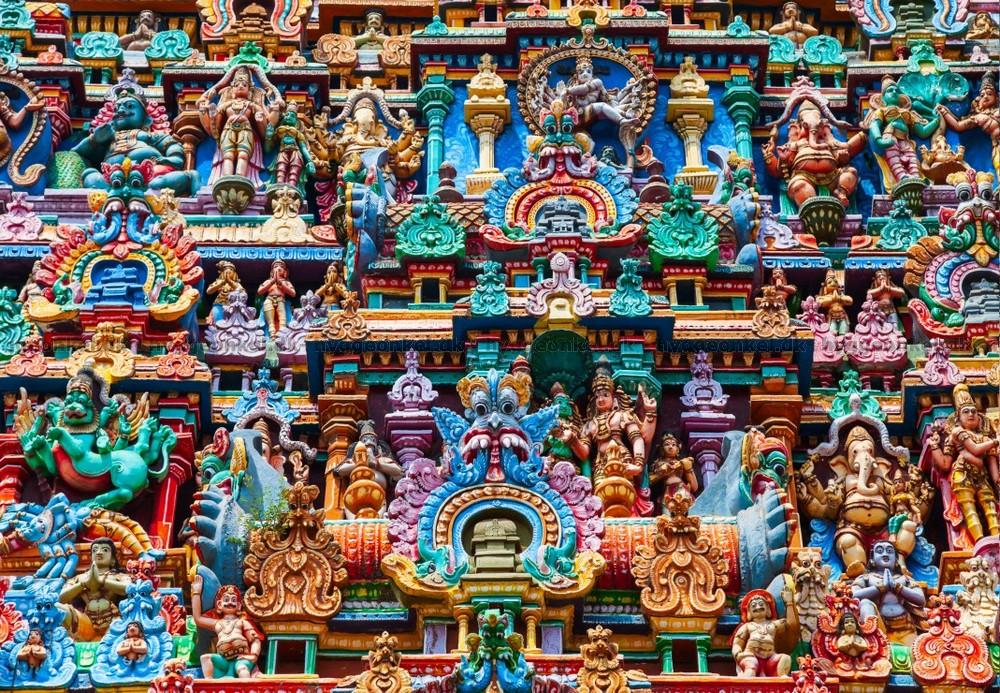 - En spændende, farverig facade fra et hinduistisk tempel
