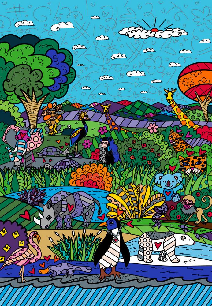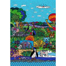 - Ved flodbredden står pinvinen sammen med krokodillen og isbjørnen. En lang række andre dyr kigger frem i landskabet