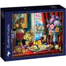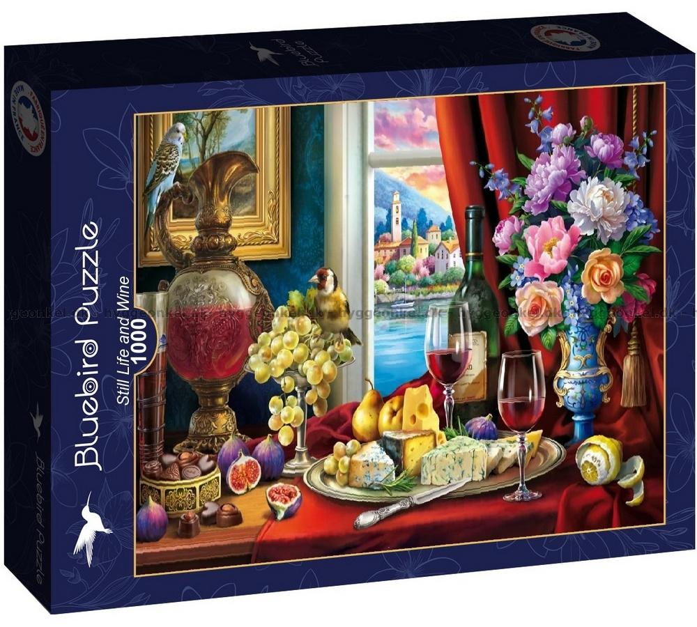 Bordet er dækket med ost og vin, 1000 brikker