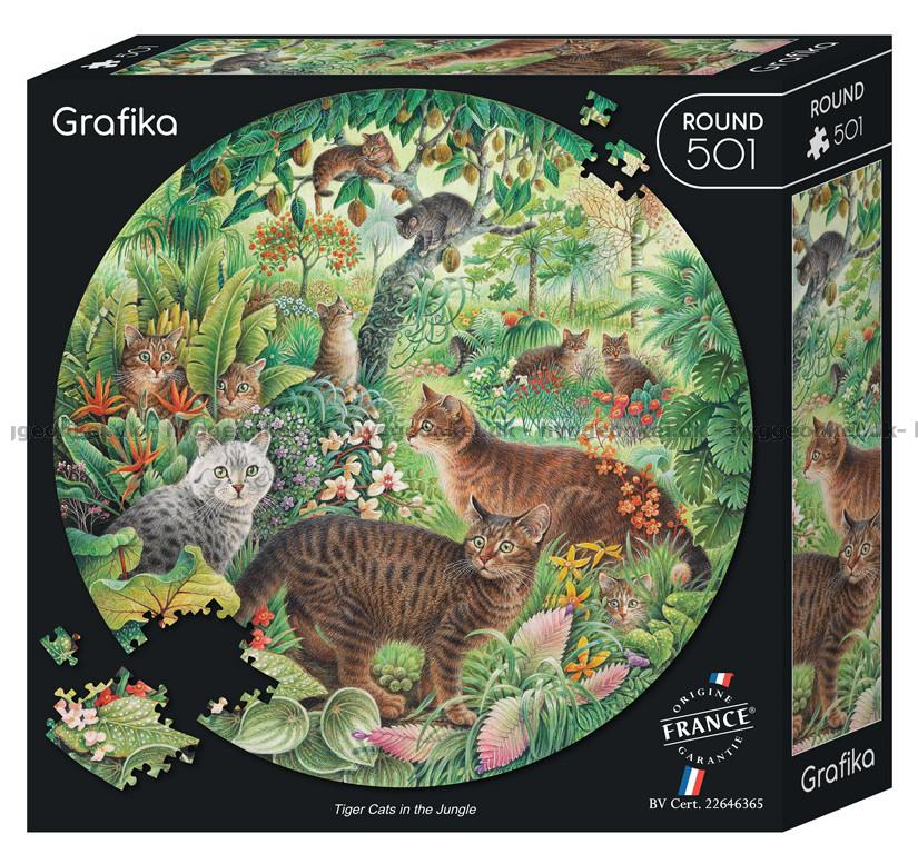 Junglen med katte - Rundt puslespil, 500 brikker