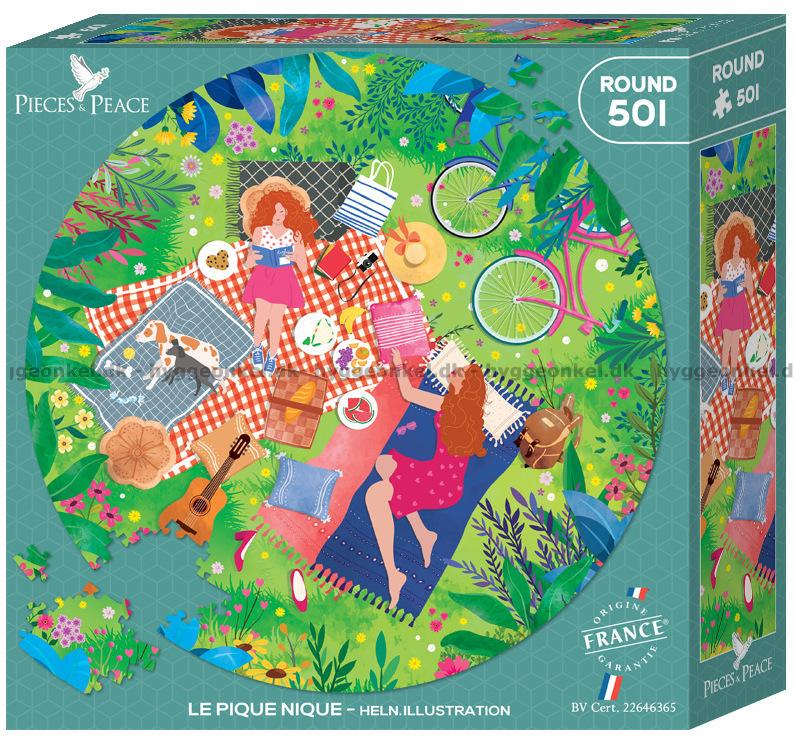 Picnic i det grønne - Rundt puslespil, 500 brikker