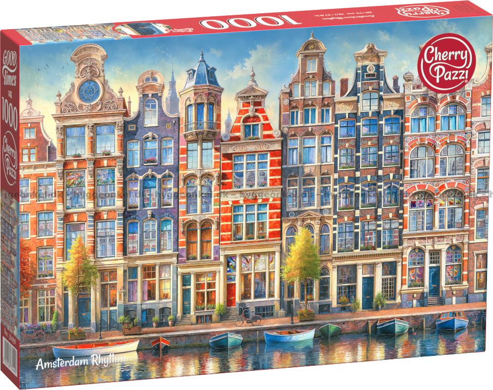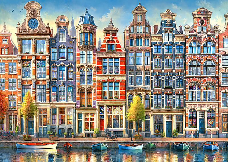 Amsterdam: Farverige huse ved kanalen, 1000 brikker