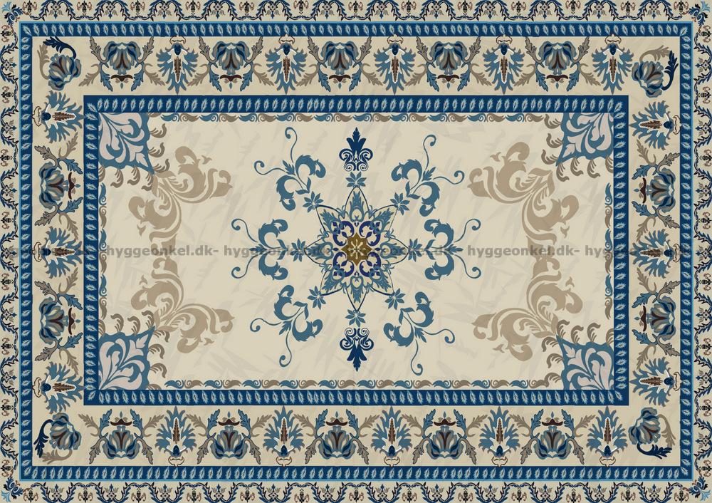 - Smukt orientalsk tæppe i blå og beige nuancer