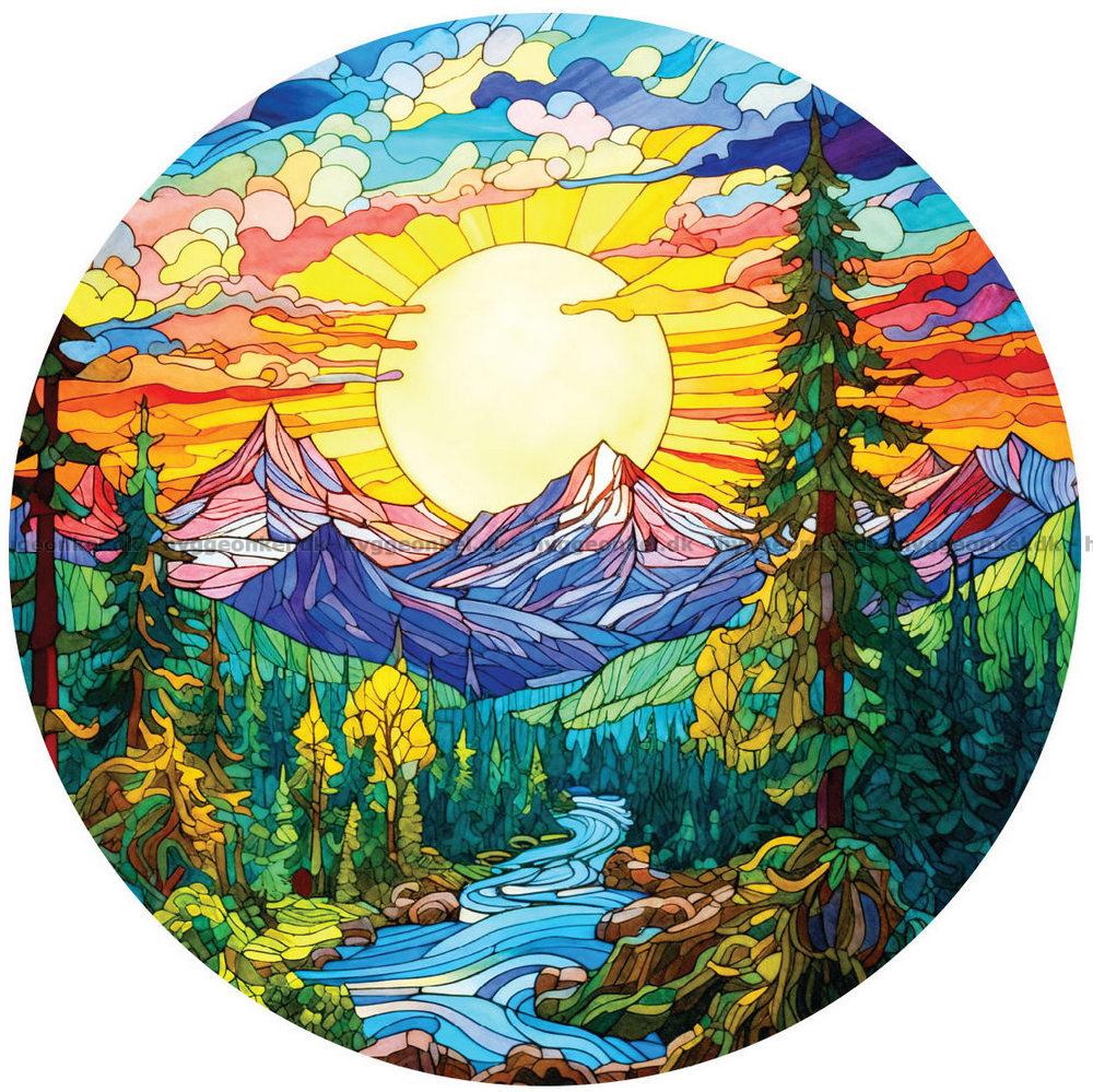 Solopgang i bjergene - Rundt puslespil, 570 brikker