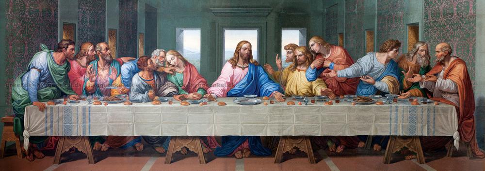 - Motiv fra Bibelen, hvor Jesus sammen med sine disciple deler det sidste måltid