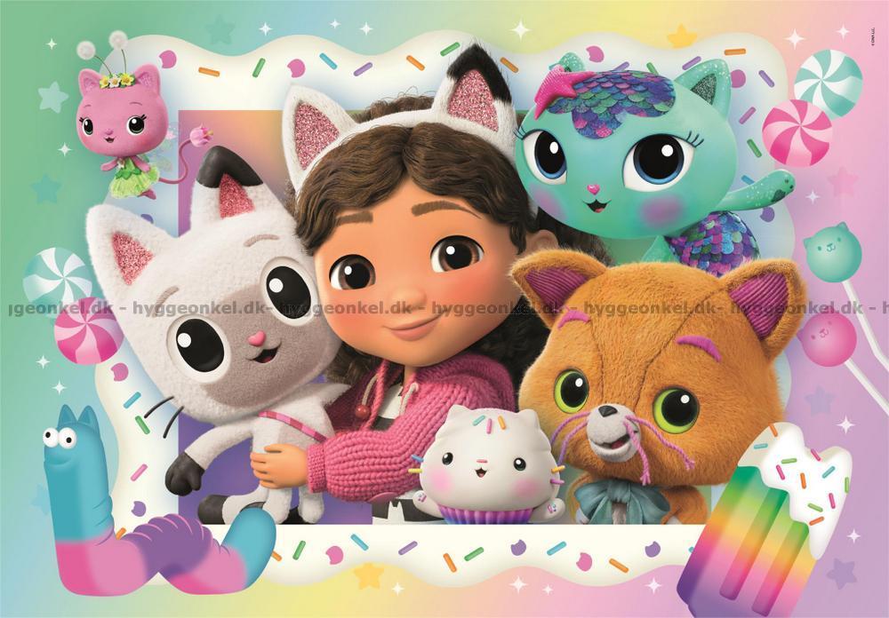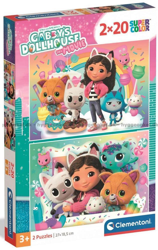 - 2 forskellige puslespil hver på 20 brikker samlet i én æske. Her er motiverne med de herlige katte sammen med skønne Gabby