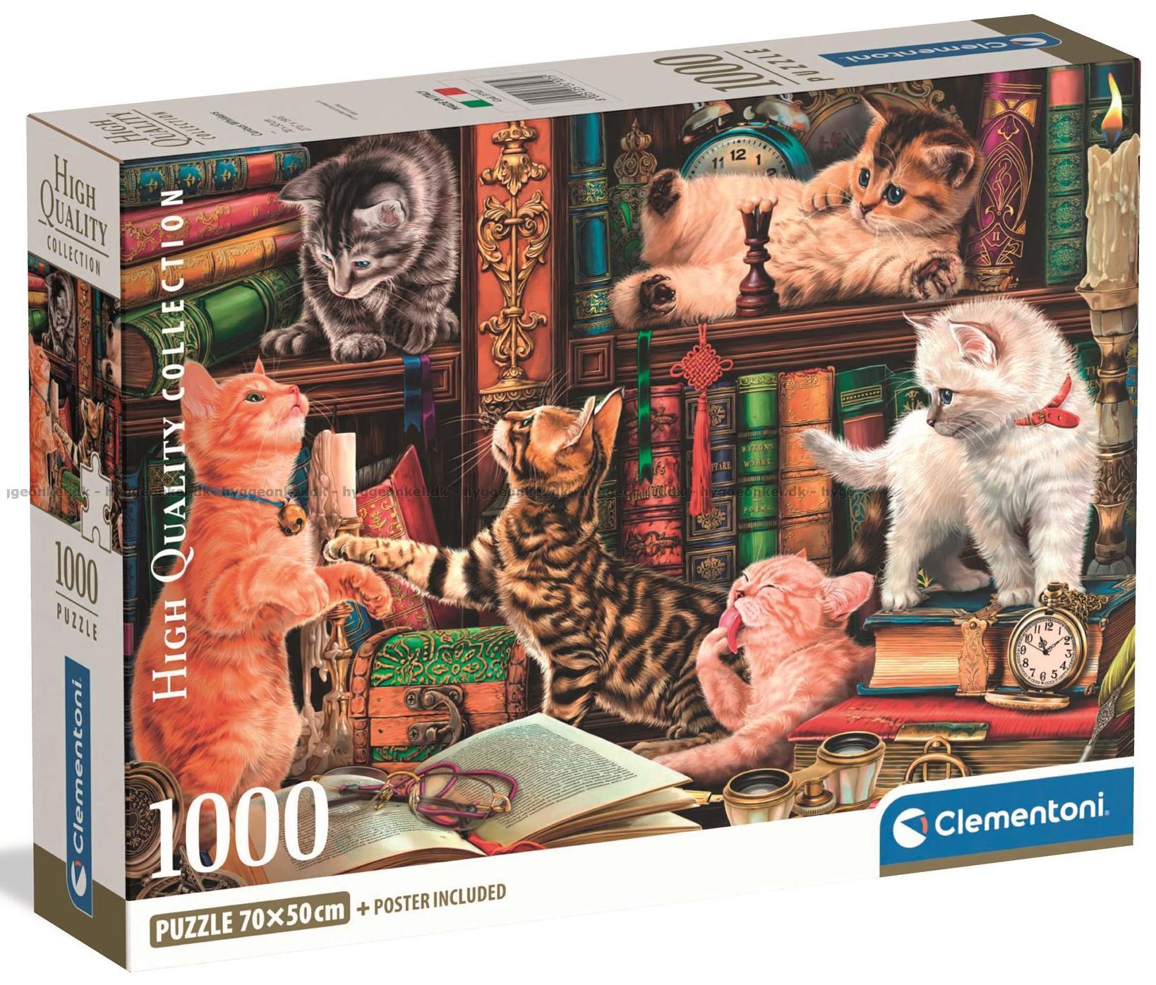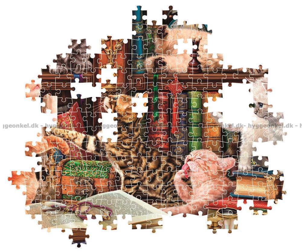 - De nysgerrige katte leger blandt de mange bøger på reolen