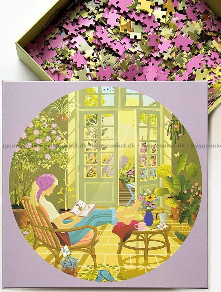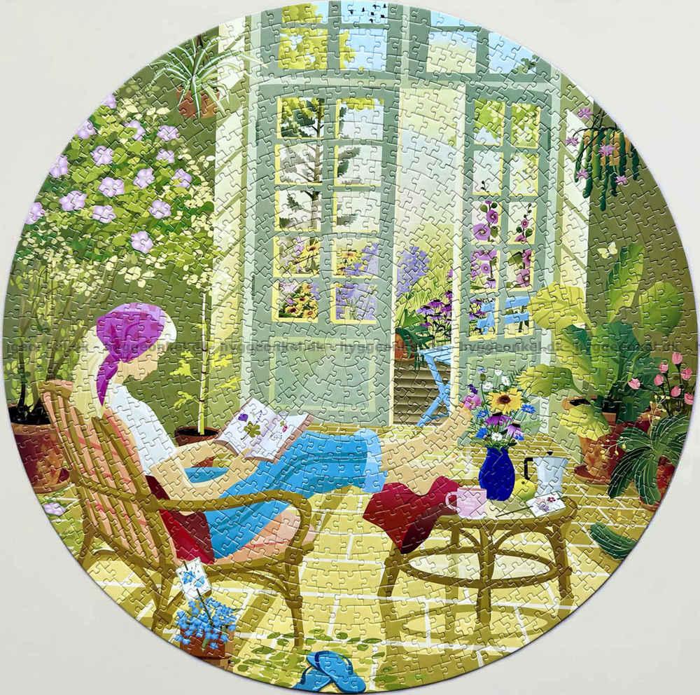 Solstrejf i havestue - Rundt puslespil, 1000 brikker