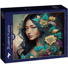 - Kvindens hår flettes sammen med store blomster og frodige blade