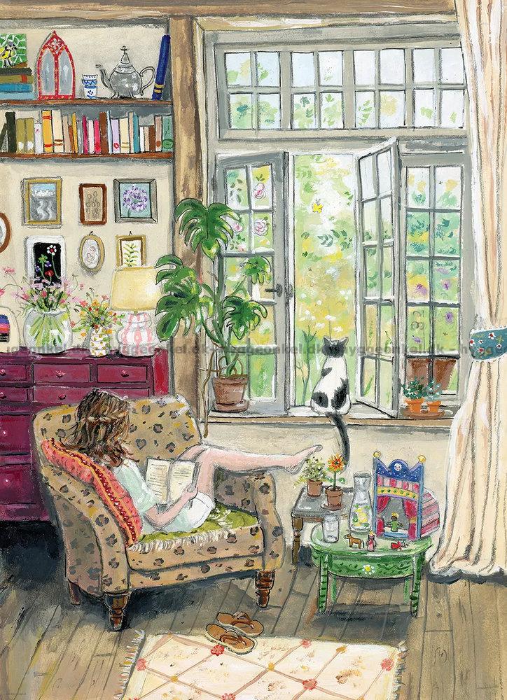 - Motivet er tegnet af Gwen van Knippenberg. Dette puslespil er med større brikker. Det betyder, at når motivet er lagt, så fylder det samme som et almindeligt 1000 brikkers puslespil