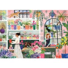 - Der er fyldt med planter og farverige blomster i den lille butik