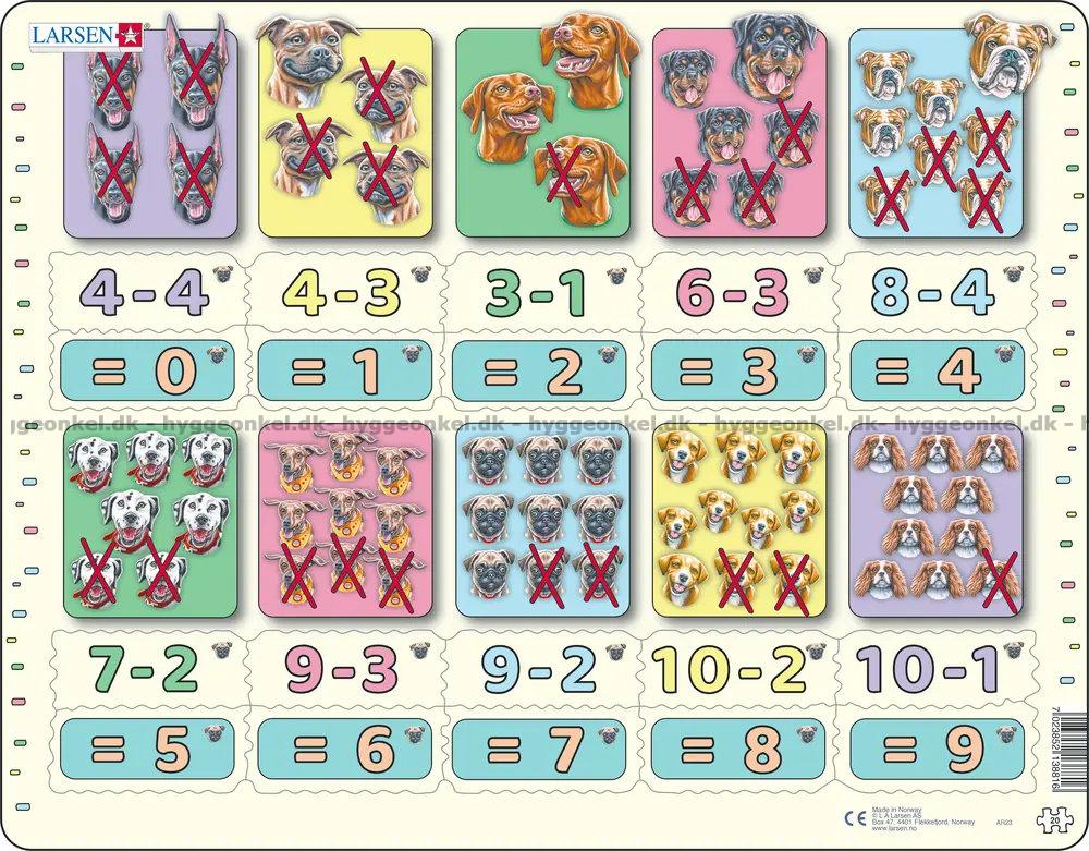 Matematik: Minus stykker med hunde - Rammepuslespil, 20 brikker