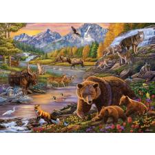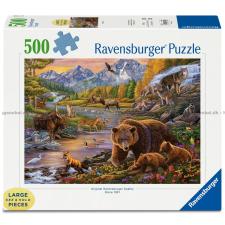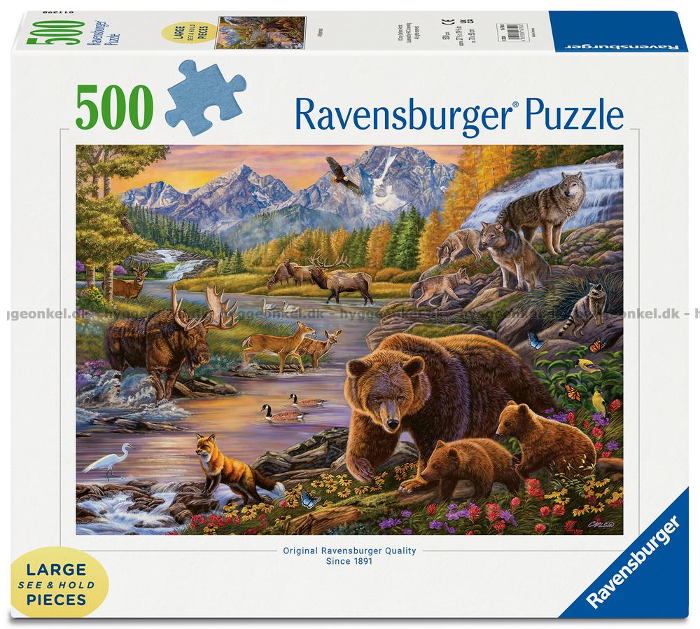 - Den brune bjørn med sine to unger er på vej ned til floden