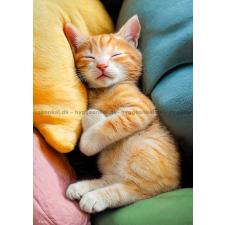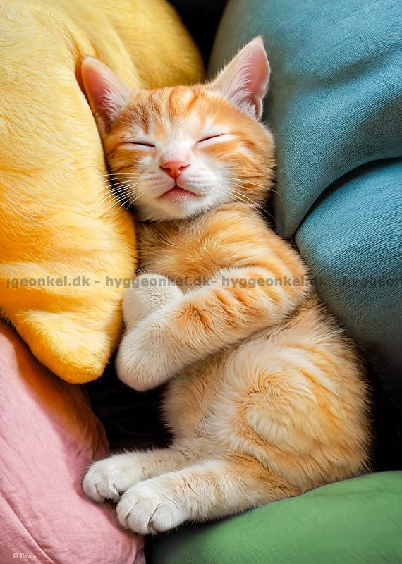 - Den rødstribede kat ligger trygt og sover