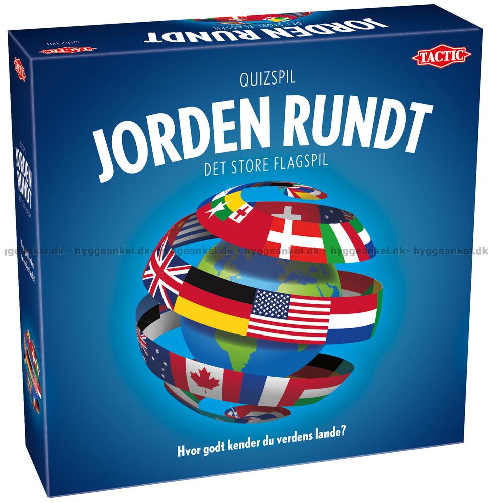 Jorden rundt tager jer med på en rejse gennem hele verden. Spillet kredser om flag, lande og kontinenter og inviterer både børn og voksne til at teste deres viden og nysgerrighed om klodens mangfoldighed. Undervejs bevæger I jer fra kontinent til kontinent, opdager nye lande og samler point ved at genkende flag og svare på spørgsmål, der åbner døren til spændende geografisk viden.