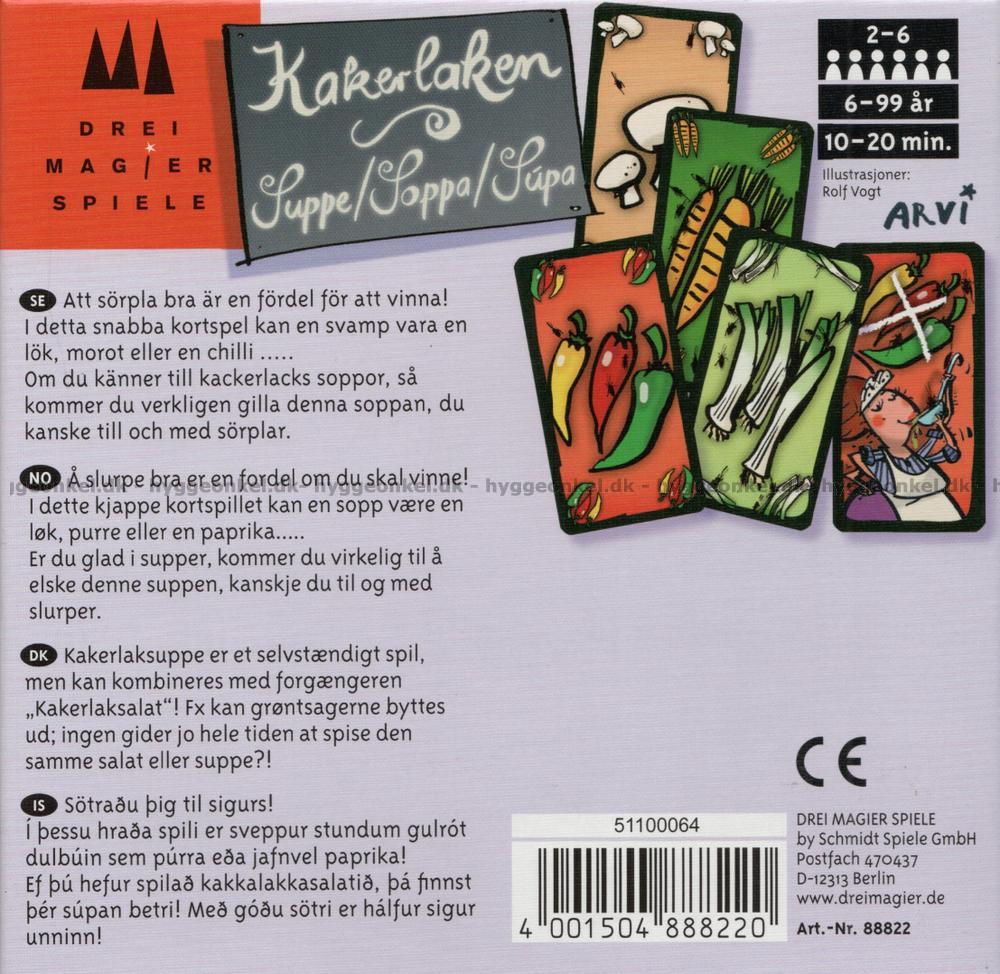 Endnu et sjovt kortspil i Kakerlak-serien. Spillet kan spilles alene eller som en udvidelse til Kakerlaken Salat.
