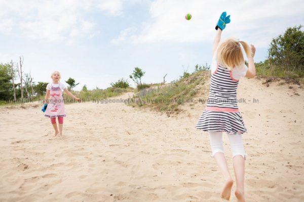 Her får du 2 handsker og 1 tennisbold. Handskerne er 18 cm lange og 23 cm bredde. De er beregnet til børn.