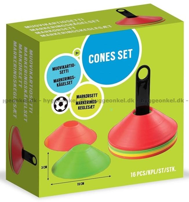 Hver kegle måler 3 cm i højden og har en diameter på 19 cm i bunden.