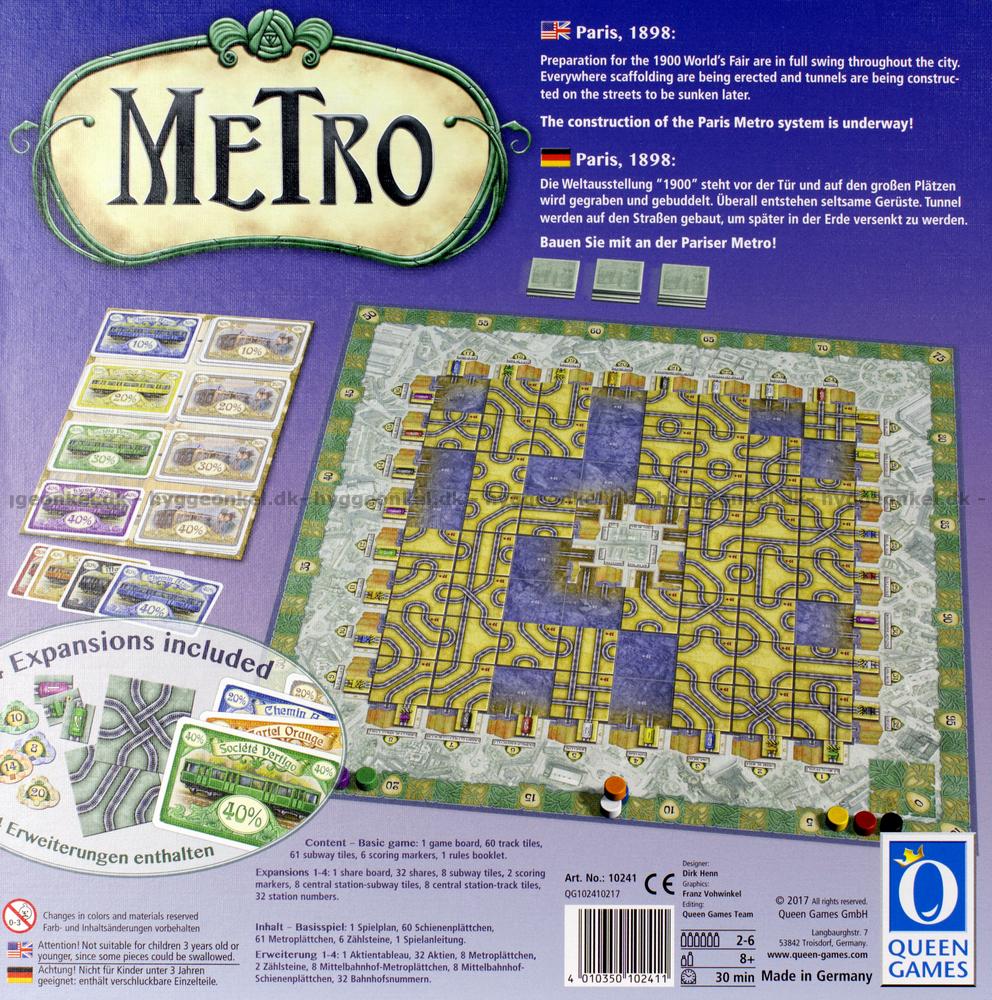 Vi er i Paris i 1898, og det gælder om at få placeret sine brikker bedst muligt på brættet, så din metro bliver så lang som muligt og modstandernes ikke gør.