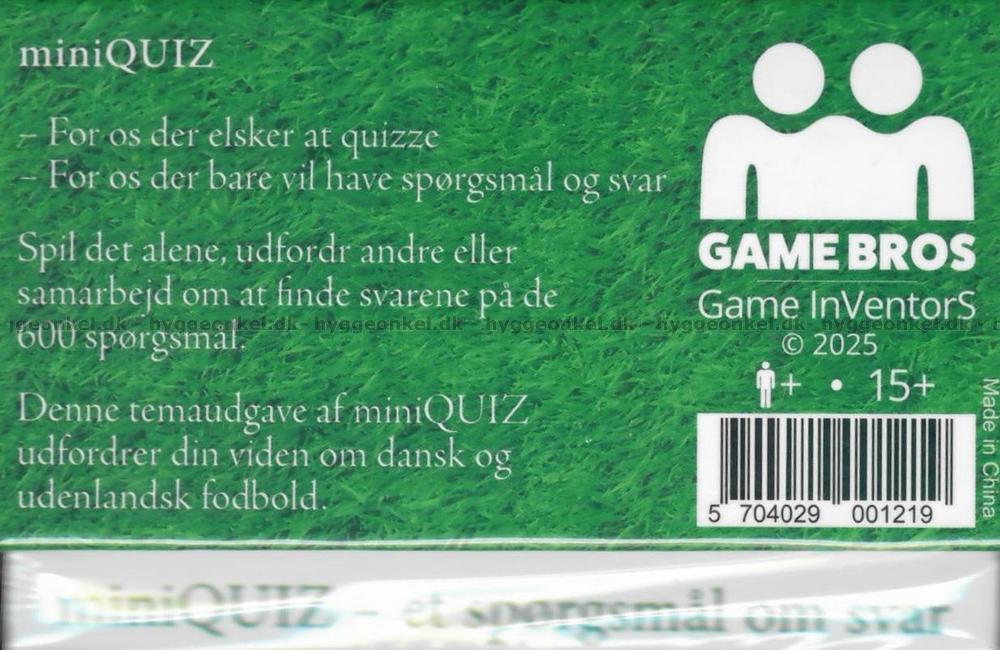 MiniQuiz: Fodbold er et spændende quizspil i MiniQuiz-serien, som er skabt til alle, der elsker spillets verden både på og uden for banen. Med hele 600 spørgsmål i et praktisk og kompakt design kan du udfordre din viden om både dansk og international fodbold, hvad enten det gælder store landsholdspræstationer eller ikoniske klubopgør.