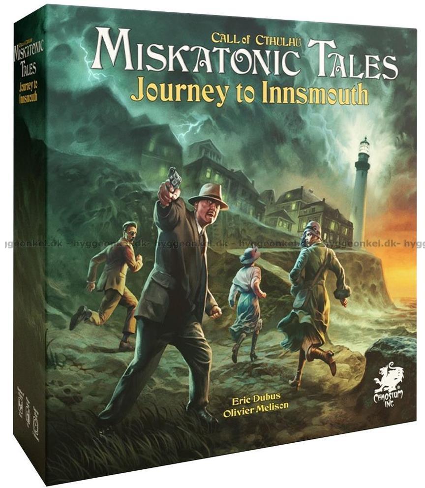 Miskatonic Tales: Journey to Innsmouth fører jer til september 1925, hvor havet ud for Rockport er blevet mørkere, tungere og fyldt med ildevarslende rygter. Hvad der begynder som en undersøgelse af mulig smugling, udvikler sig hurtigt til en rejse ind i noget langt mere foruroligende. Sammen med en gruppe efterforskere sejler I mod en forblæst klippeø og videre mod den isolerede by Innsmouth, mens historier om mærkelige lys i fyrtårnet, sære hændelser og uhyggelige skabninger i havet ulmer under overfladen. Allerede fra historiens begyndelse mærkes den tætte og dystre stemning, hvor hvert valg kan føre jer tættere på sandheden eller længere ind i mørket.