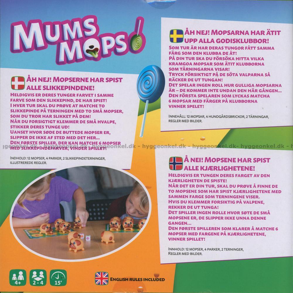 12 mops, 4 kort og 2 slikkepinde terninger.