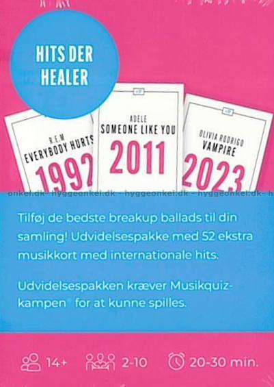 Glæd dig til at quizze med hits som Adeles Someone like you, R.E.Ms Everybody hurts og Olivia Rodrigos Vampire. Genoplev disse og mange flere numre, der både vækker minder og får smilet frem.