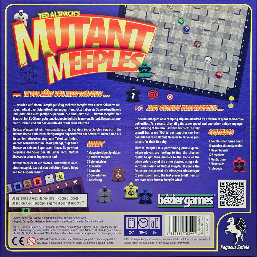 Æsken indeholder 1 tosidet spillebræt, 10 mutant meeples, 7 spillerbræt, 127 markører, 1 timeglas samt et sæt engelske spilleregler.