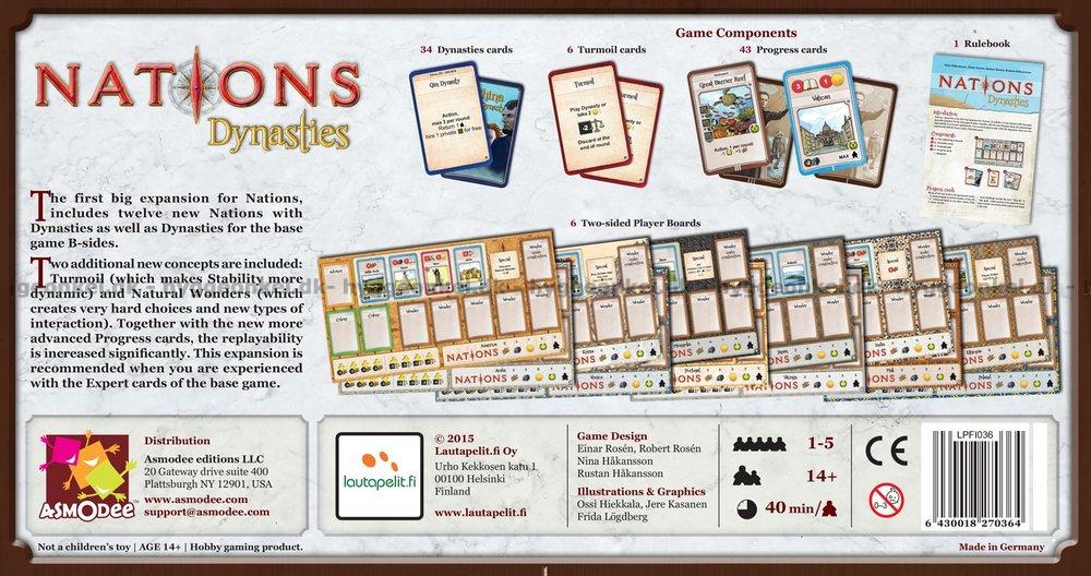 Dette er den første store udvidelse til Nations-spillet. Her får du 12 nye nationer med dynastier, såvel som dynastier til grundspillets B-sider.