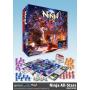 42 plastik ninja miniature figurer, 1 dobbelt-sidet spilleplade, kort og papmarkører.