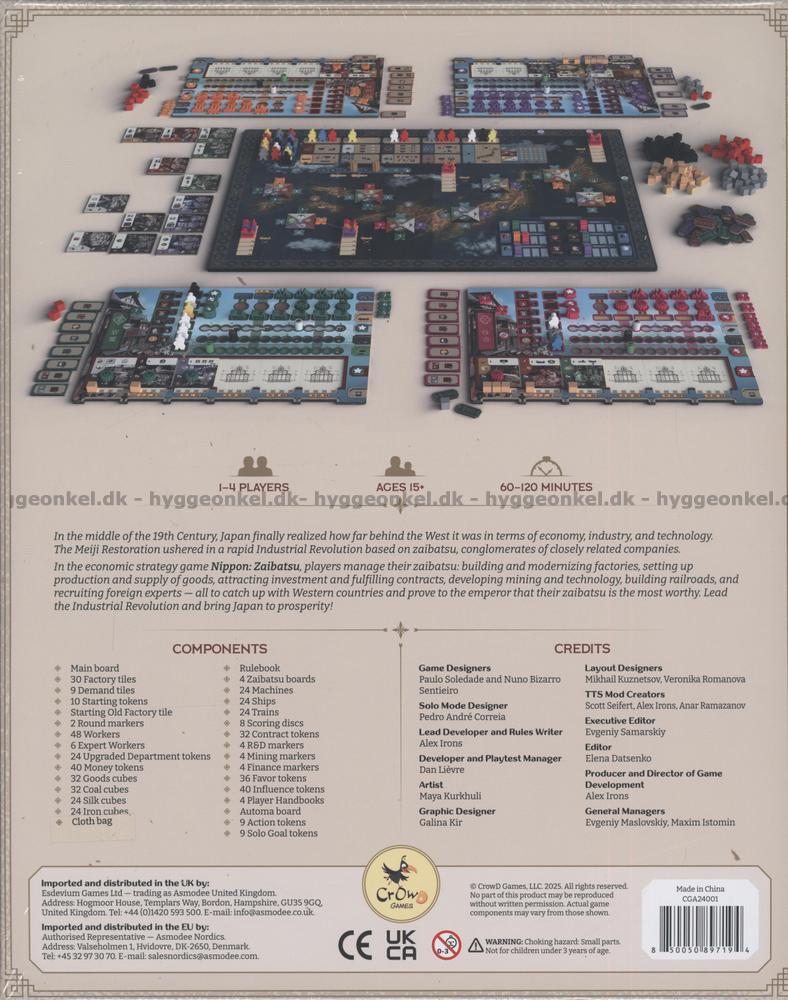 Nippon: Zaibatsu er et økonomisk strategispil, der foregår under Meiji-restaurationen i midten af det 19. århundrede, hvor Japan indleder en hastig industrialisering for at indhente Vestens forspring inden for økonomi, industri og teknologi. Som leder af et magtfuldt zaibatsu, et konglomerat af tæt forbundne virksomheder, skal du opbygge, modernisere og optimere dit industrielle imperium og bevise over for kejseren, at netop din koncern er den mest fremsynede og succesfulde.