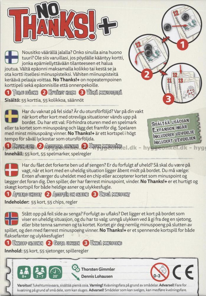 No Thanks er et sjovt og anderledes kortspil med enkle regler og en rigtig høj "skal vi tage en omgang mere"-faktor.