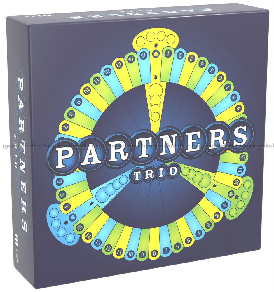 Partners Trio er et spil i den populære Partners serie. Trio versionen er beregnet til at spille præcist 3 personer mod hinanden. Der er kommet nye spændende kort til, men ellers minder spillet om de andre udgaver, du måske allerede kender.