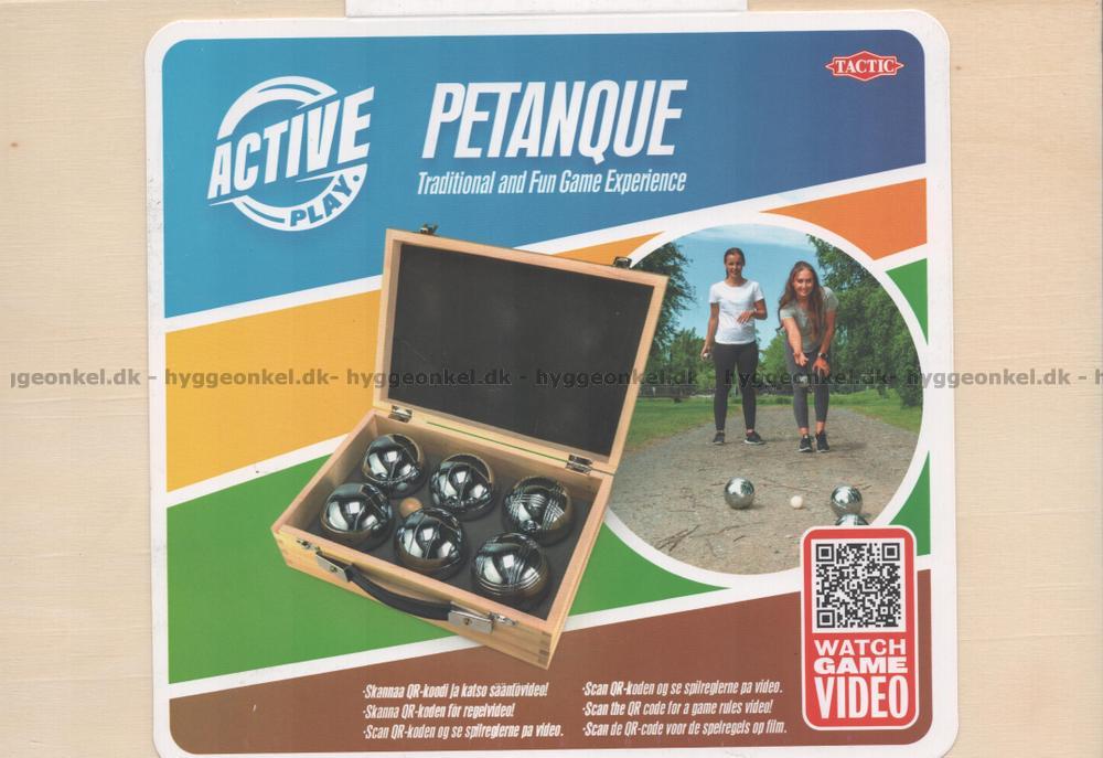 Kuglerne ligger i en trækasse med håndtag, så det er nemt at have med. Kassen måler 28 x 19 x 9 cm.