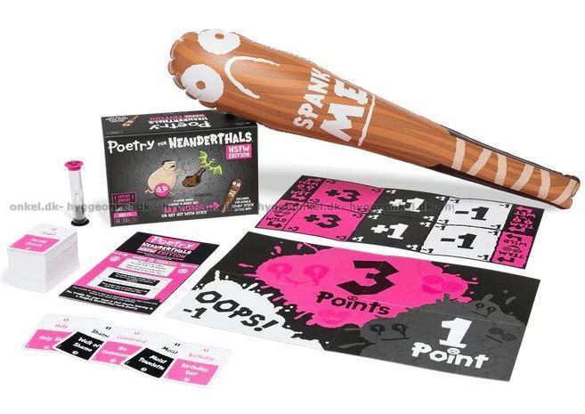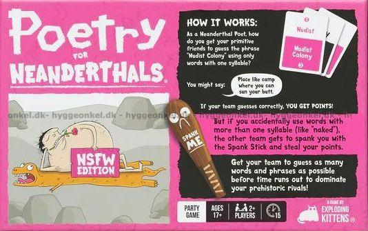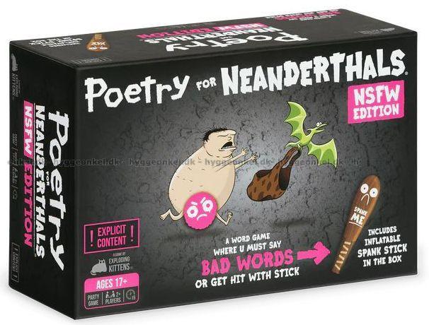 Poetry for Neanderthals: NSFW er et frækt, fjollet og stærkt underholdende partyspil, hvor deltagerne på skift bliver udnævnt til poet og skal få deres hold til at gætte ord eller fraser – men poeten må kun bruge énstavelsesord.