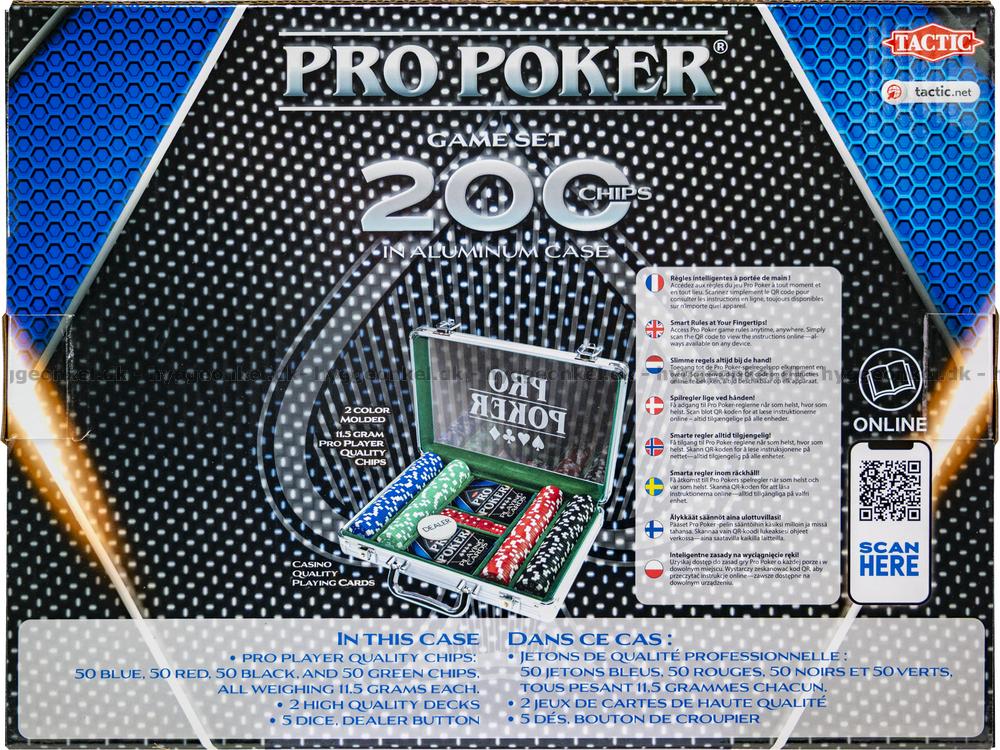- 200 jetoner fordelt på 4 farver i 11,5 grams kvaliteten