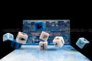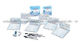 6 spilleplader, 6 tuscher og 8 specialterninger.