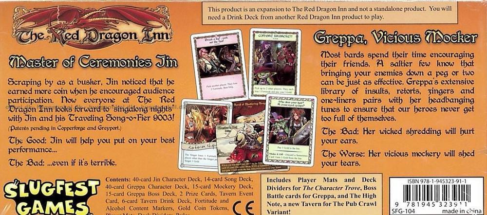 Velkommen til kroens larmende og kaotiske stemning, hvor helte slapper af efter eventyr med drikkevarer, sange og spidse bemærkninger. I denne udvidelse til Red Dragon Inn mødes den karismatiske bard Jin og den bidske goblin Greppa i en underholdende duel fyldt med sang, hån og uventede vendinger. Jin styrer kroens stemning med sine fængende sange og tvinger de andre gæster til at synge med, mens Greppa bruger sin skarpe tunge og nådesløse spot til at bringe modstanderne ud af balance.