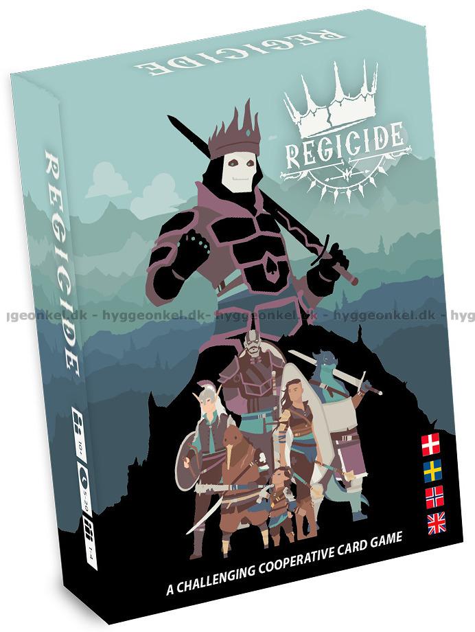 Regicide er et samarbejdsdrevet kortspil, hvor du og dine medspillere kæmper for at nedkæmpe en række mægtige og korrupte monarker. I bruger en almindelig kortstok, hvor hver kulør giver unikke kræfter, så I kan hele, trække kort, fordoble skade eller beskytte jer mod fjendens angreb.