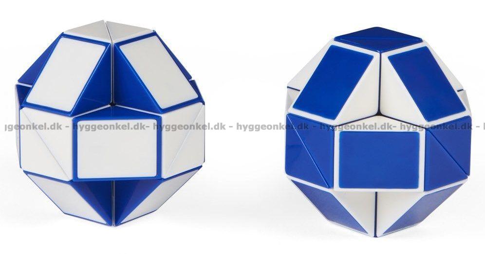 Her får du den originale Rubiks Connector Snake. Hvert felt er ca. 1,5 x 2 cm. Æsken indeholder 2 slanger, der kan kobles sammen til én stor.