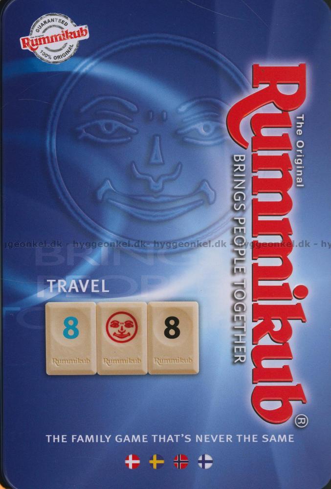 Rejseudgaven af Rummikub. Spillet er det samme, som har begejstret og henrykket verden de sidste 50 år. Størrelsen (og dermed prisen) er bare halveret i denne udgave af klassikeren.