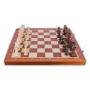 Brikkerne er i Staunton-design. Ekstra vægt i bunden af brikkerne betyder, at de står ekstra stabilt på brættet.