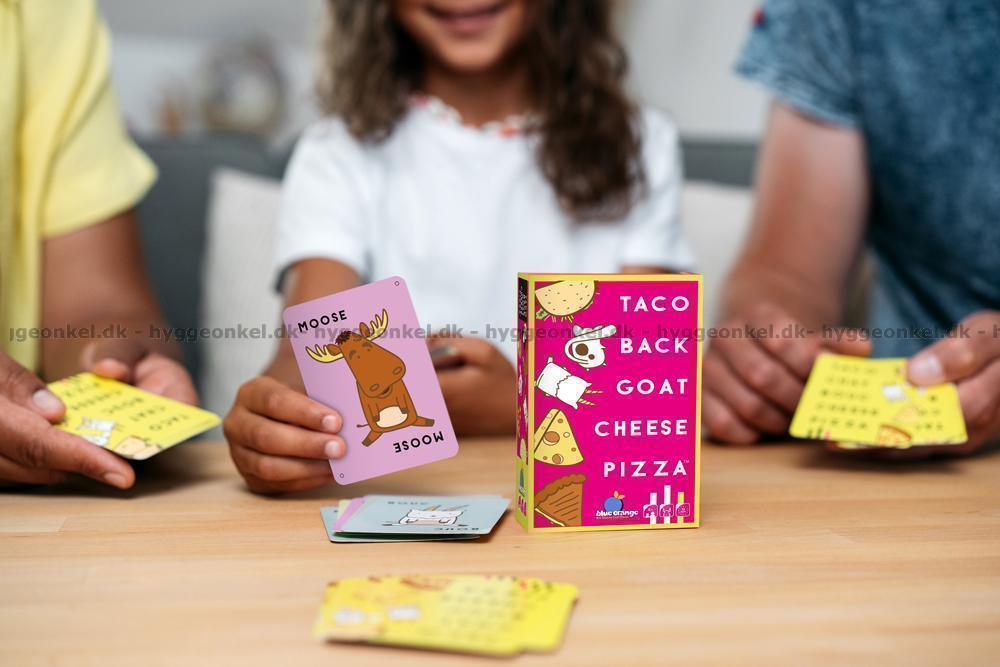 I dette kortspil skiftes spillerne til at sige TACO, CAT, GOAT, CHEESE, PIZZA.