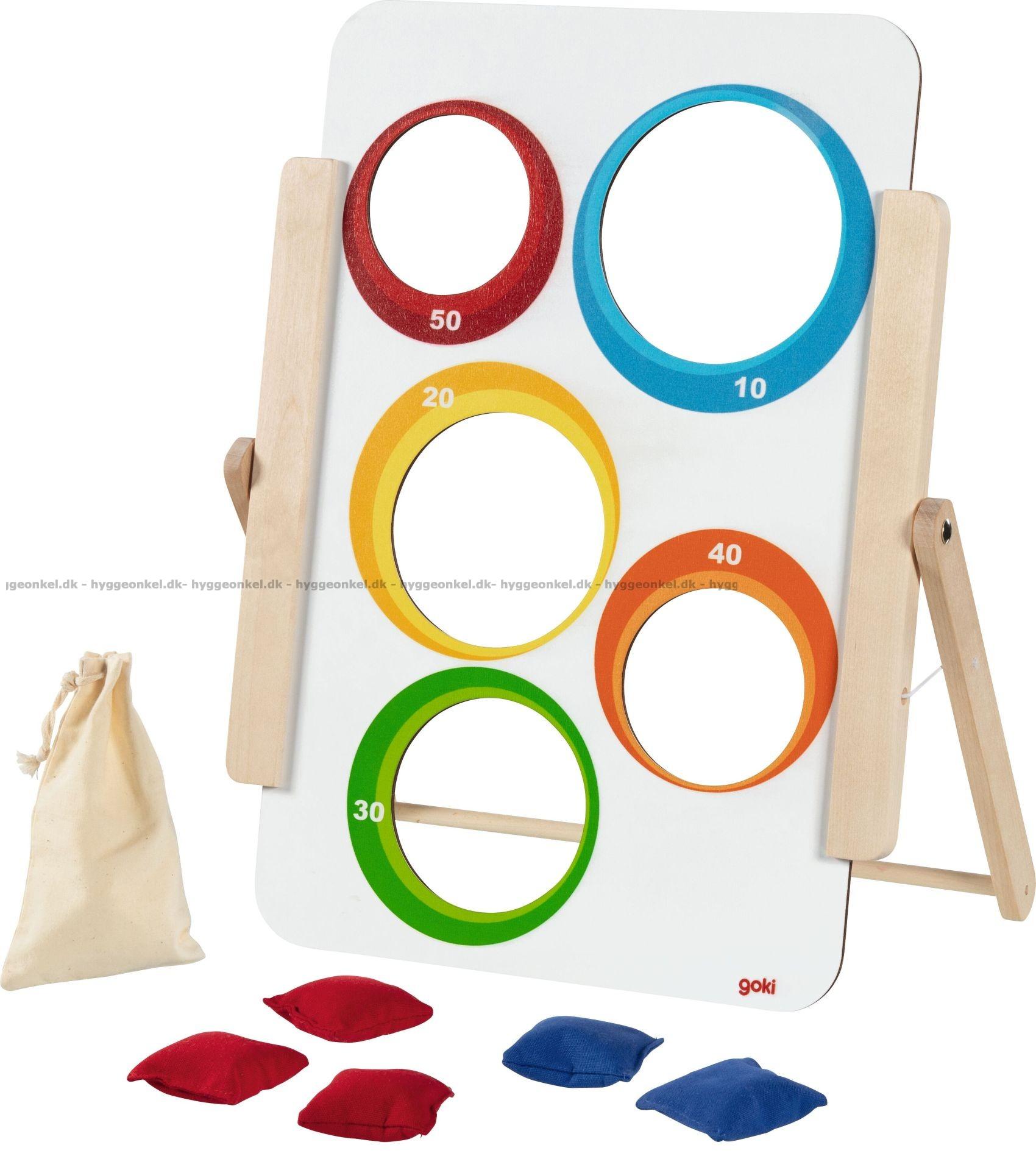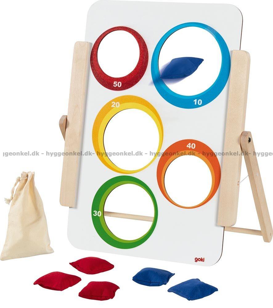 Kastespil er et underholdende spil, der samler både børn og voksne om sjov konkurrence og hyggelige stunder. Spillet består af en fritstående målskive med to forskellige spillesider samt seks bløde kasteposer, fordelt i to farver. Den dobbeltsidede målskive giver mulighed for to sværhedsgrader, så både små og større spillere kan være med og udfordre deres præcision.