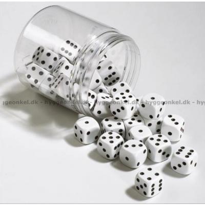 36 hvide terninger med en sidelængde på 15 mm. Helt klassiske terninger i plastik.