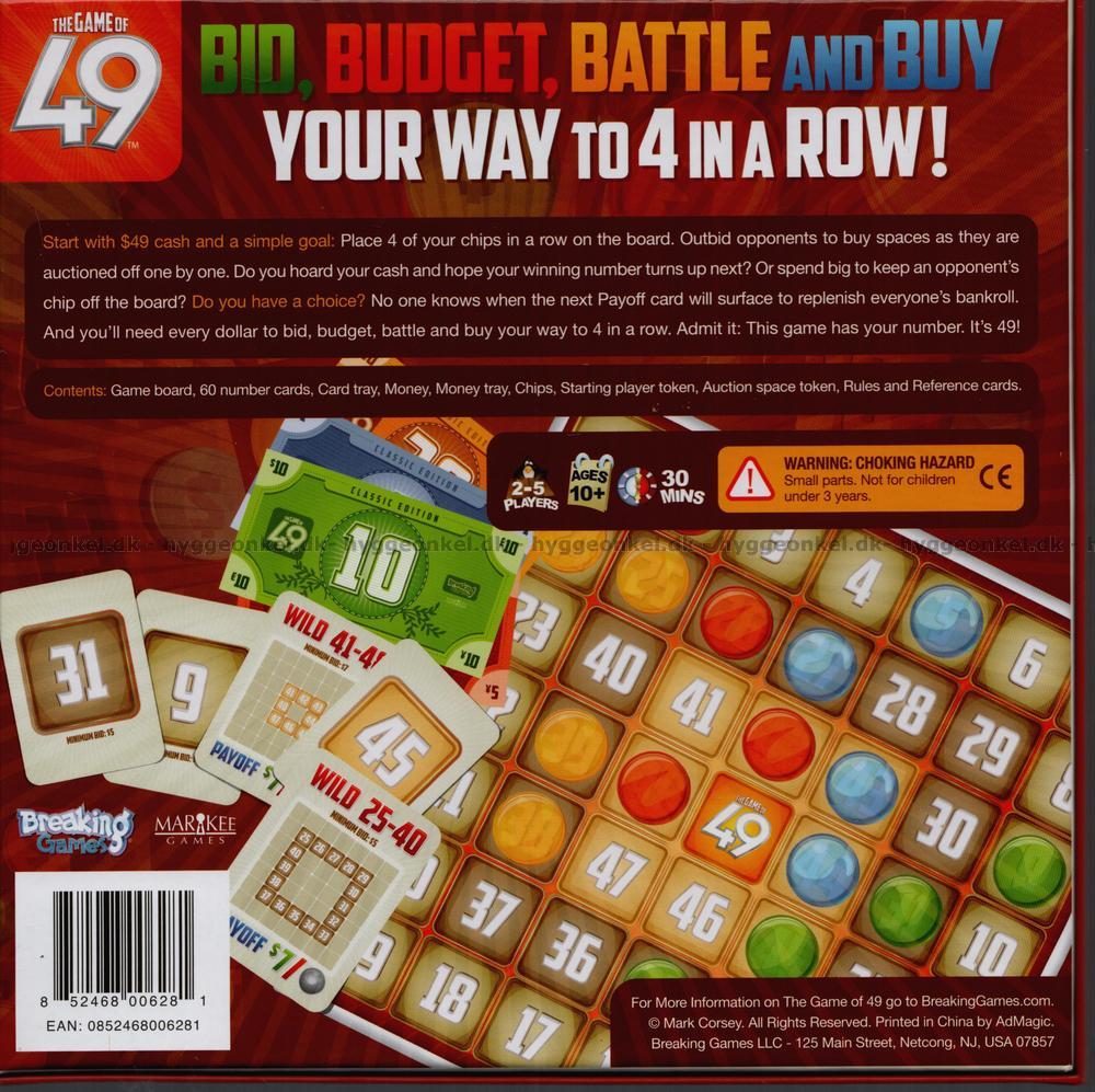 I "The Game of 49" skal du byde, købe og kæmpe dig til sejren. Der er tale om et spændende, strategisk spil for hele familien.